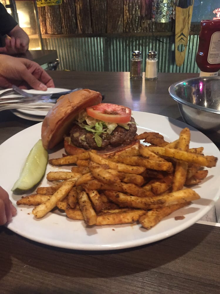 1/2 lb. fresh patty, bacon and cheddar topped with BBQ sauce.