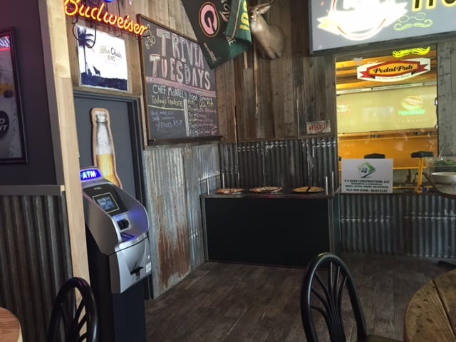 Creamy mushroom base, seasoned hamburger, green beans, onions, tater tots and mozzarella. Served on Stadium thin crust.